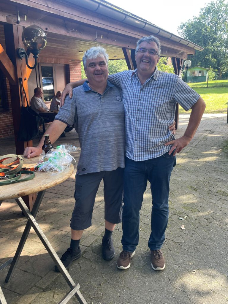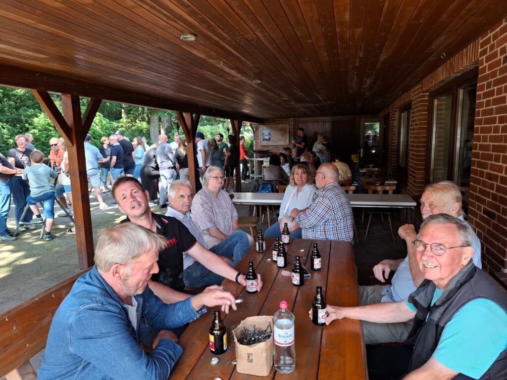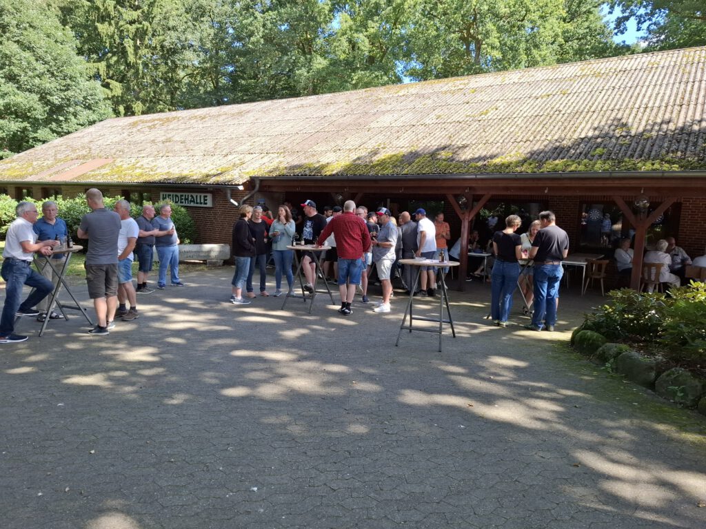Mitte August war es dann soweit und weit mehr als die 50 angemeldeten Teilnehmer aus beiden Vereinen, trafen sich bei bestem Wetter an der Heidehalle. Nach einer Stärkung am Grill von Gerd & Klaus und der sensationellen Pilzpfanne von Lucia & Uwe wurde ein vereinsübergreifender Wettkampf angeboten. Beim Schießen, Darts und Knobeln konnten sich die ausgelosten Zweierteams dann besser kennenlernen und gemeinsam auf Punktejagd gehen. Schlussendlich konnten sich Schiller & Jörg knapp vor Vincent & Schwaddi und Caren & Raffi durchsetzen – Herzlichen Glückwunsch!